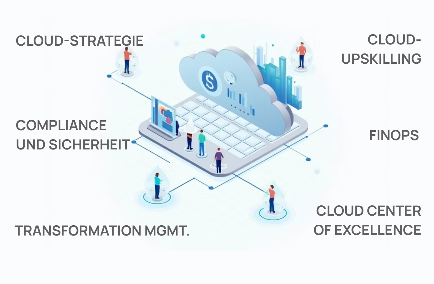 We train your employees in the use of cloud technology and convey the appropriate cloud culture. Additionally, we develop change management plans and provide comprehensive support after implementation to ensure a smooth transition and sustainable cloud usage.